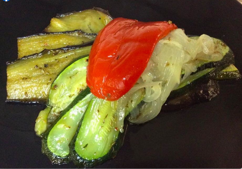 Même principe que la recette des légumes grillés au parfum d'origan, puis ajouter le jambpn de pays et une salade d'herbes