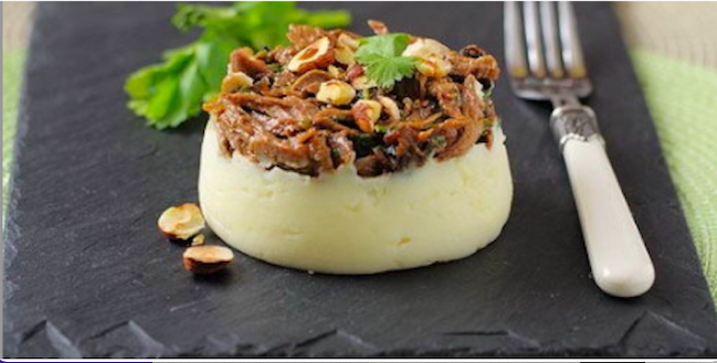 Placer un cercle en inox et déposez la purée, tassez bien.