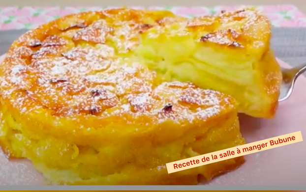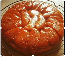 Verser dans la pâte dans le moule, poser les pommes dessus en les enfonçant légèrement.