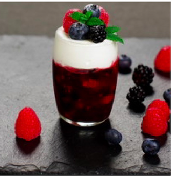 Répartissez vos fruits dans vos terrines et couvrir de chantilly, lissez la surface et décorez de fruits rouges.