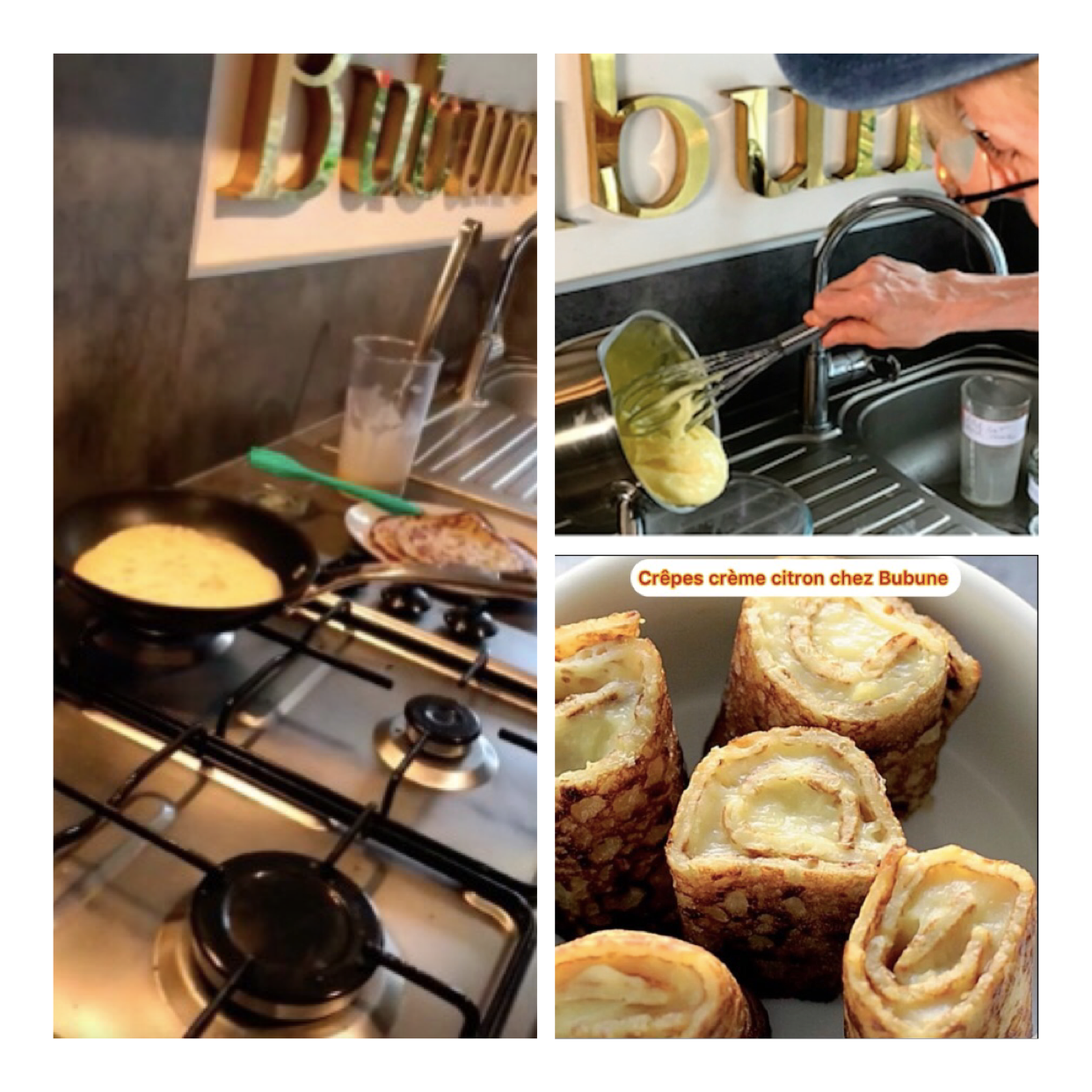 Tartine chaque crêpe de crème au citron ( à la spatule)