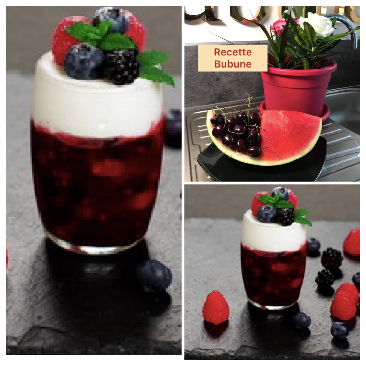 Répartissez vos fruits dans vos terrines et couvrir de chantilly, lissez la surface et décorez de fruits rouges.
