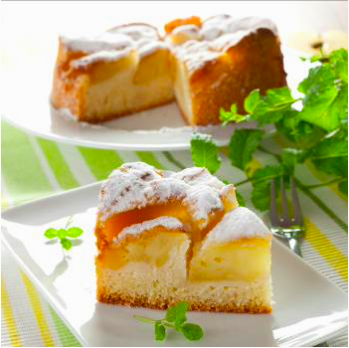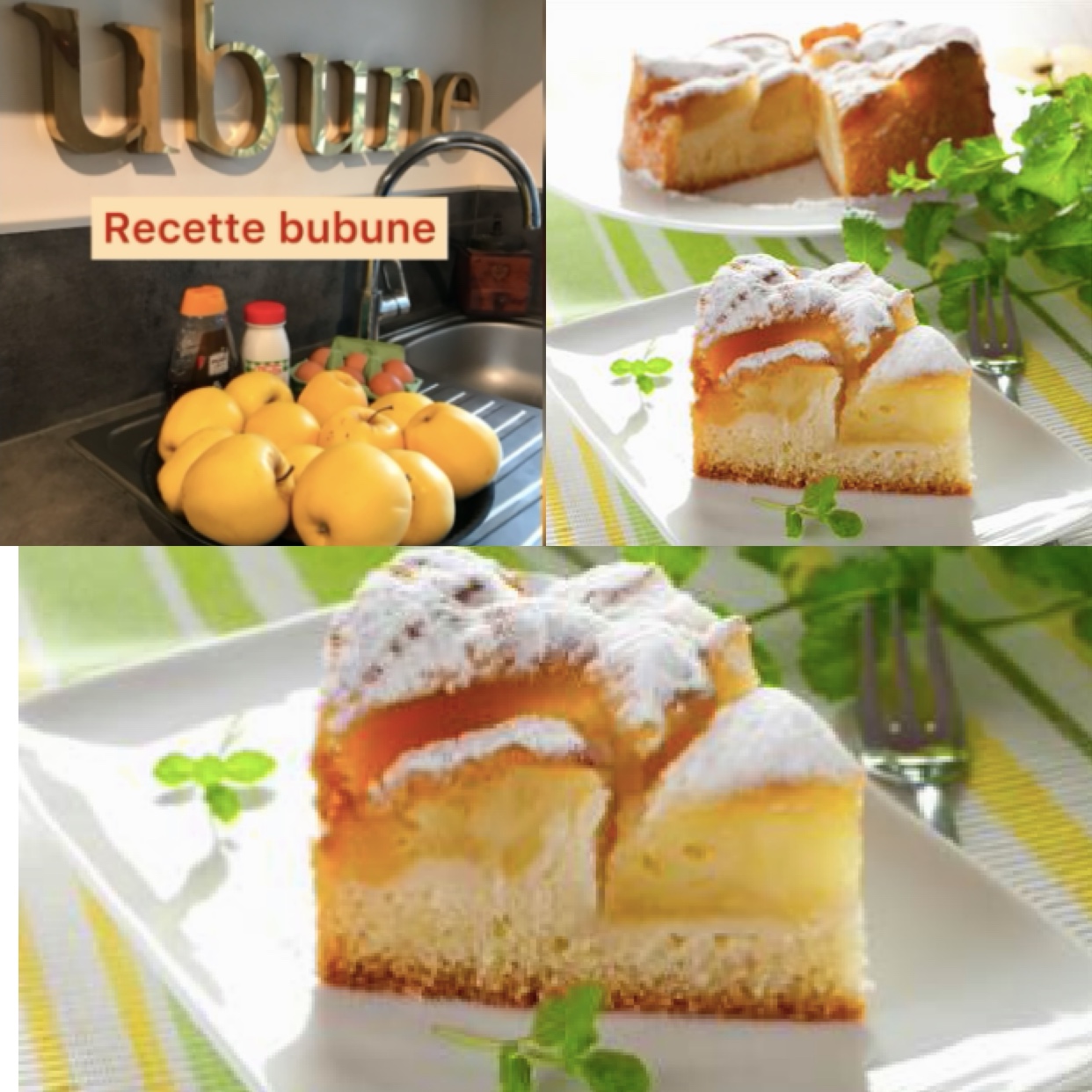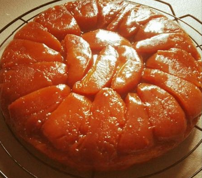 Verser dans la pâte dans le moule, poser les pommes dessus en les enfonçant légèrement.